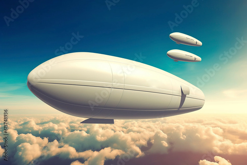 Obraz premium Conceptual design of future airships, zeppelins soaring through the air. Ai generated.