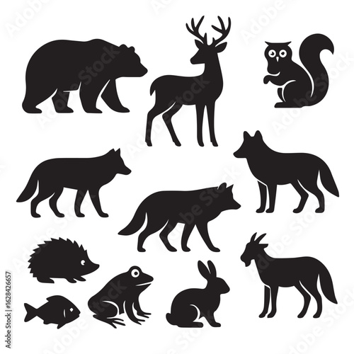 Obraz premium Conceptual Forest Animal Silhouette Set