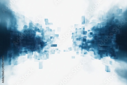 © Sakiyah, Obraz premium Conceptual futuristic sky with digital glitch effects on a blank white canvas, high-tech sky, abstract digital art