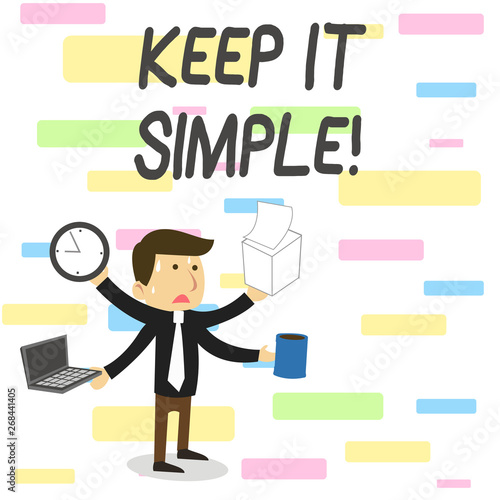 Fototapeta premium Conceptual hand writing showing Keep It Simple. Concept meaning ask something easy understand not go into too much detail