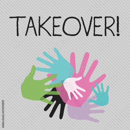 © Zofia, Obraz premium Conceptual hand writing showing Takeover. Concept meaning Assuming control of something Corporate purchase strategy