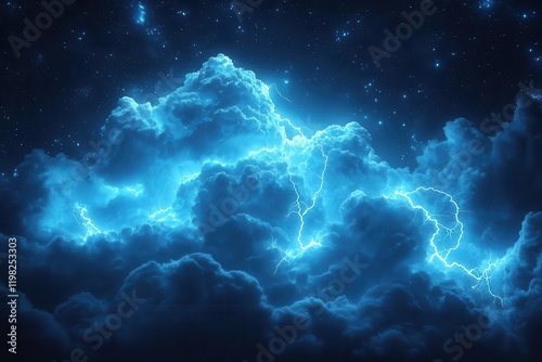 Fototapeta premium conceptual illustration of a stormy cloud illuminated by striking neon...