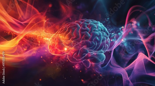 © wicha, Obraz premium conceptual image of brain waves influencing and being influenced by external energy fields