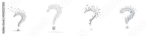 Obraz premium Conceptual Image of Question Marks Dissolving Into Particles on White