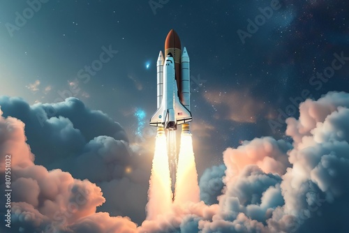 Obraz premium Conceptual launch of a spaceship, symbolizing startup growth and innovation