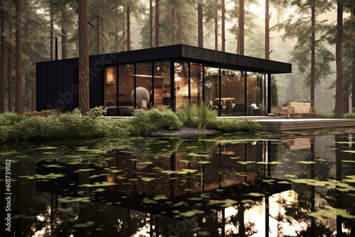 © Tuyres, Obraz premium Conceptual modern glasshouse home exterior design. Contemporary glass house concept. Generative AI illustration.