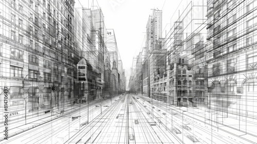 Fototapeta premium Conceptual Pencil Drawing of an Urban Cityscape