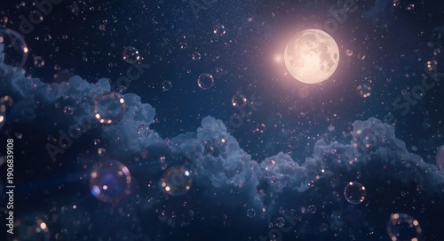 Obraz premium Conceptual rendering of ethereal bubbles floating in a mystical nightscape...
