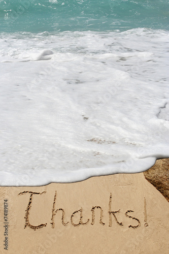 © high_resolution, Fototapeta premium Conceptual thank you text in sand and water