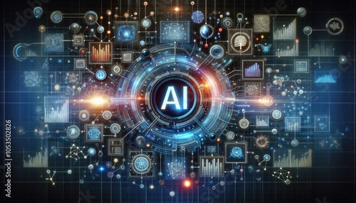 © somsong, Obraz premium Conceptual Visualization of Deep Learning Integration with Data Analytics: AI-driven Analysis, Neural Networks, and Futuristic Holographic Interface in Technological Innovation