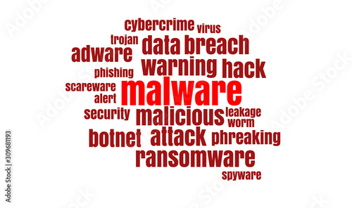 © WhataWin, Obraz premium Conceptual Words Cloud. Data Breach, Malware, Cyber Attack, Hacked Concept