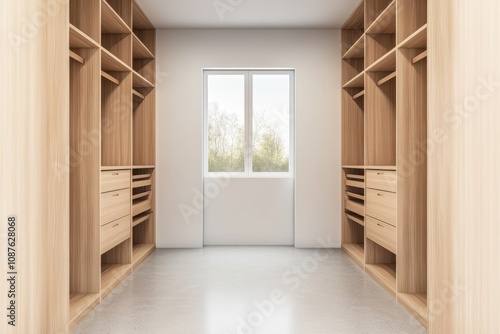 Fototapeta premium Conceptualize a closet with open shelving, empty compartments, and a polished...