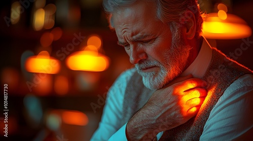 Obraz premium Concerned Worker Touching Shoulder in Soft Lighting