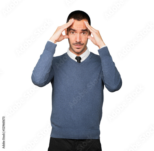 © agongallud, Naklejka premium Concerned young man with a stress gesture