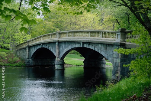 © Serhii, Fototapeta premium Concord North Bridge. Historic American Battle Bridge in Green Setting
