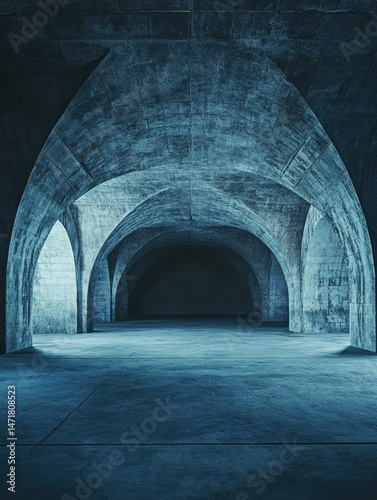 © cabs, Obraz premium Concrete arched tunnel, dark