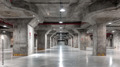 © Teerasak, Obraz premium Concrete Architecture: Underground Parking Garage Design