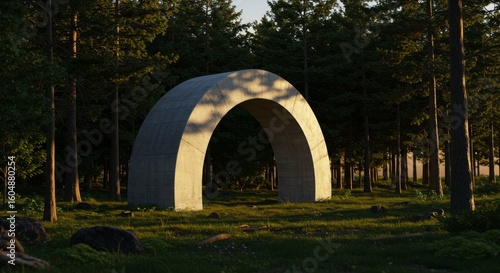 Obraz premium Concrete Archway in Forest - A minimalist concrete arch stands tall in a...