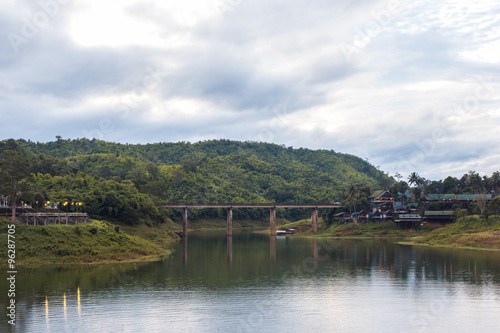 Fototapeta premium Concrete bridge for car crossing in Sangklaburi. Kanchanaburi,