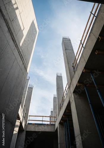 © Amith, Fototapeta premium Concrete Building Construction Structure with Modern Architectural Design.