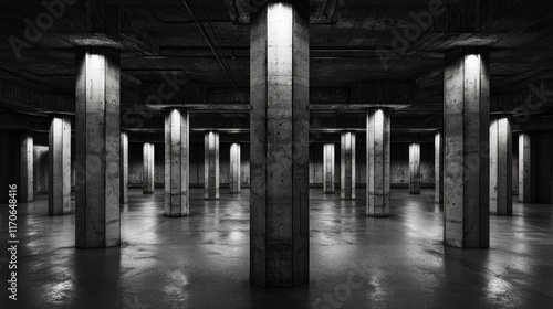 Fototapeta premium Concrete Columns in a Dark Underground Space