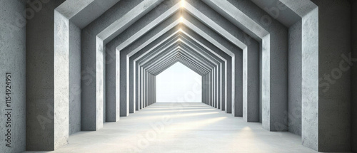 Fototapeta premium Concrete construction. Modern, minimalistic corridor with concrete arches and...