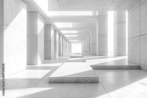 © upnowgraphics, Obraz premium Concrete Corridor with Light and Shadows