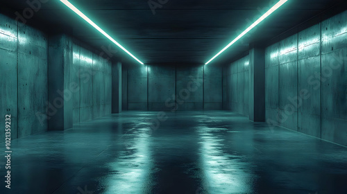 Obraz premium Concrete Corridor with Neon Lights 3D Render