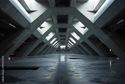 Fototapeta premium Concrete hallway with light shining through a window at the end.