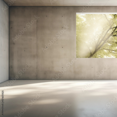 © HecoPhoto, Fototapeta premium Concrete Room with Tree Window View