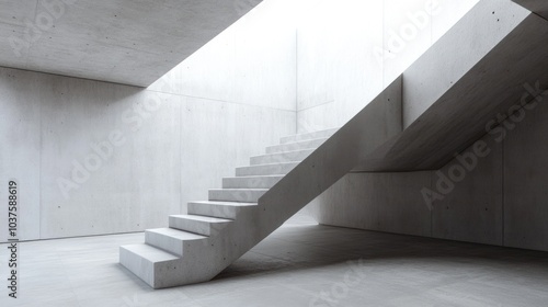 © creativeideh, Obraz premium Concrete Staircase in Minimalist Interior