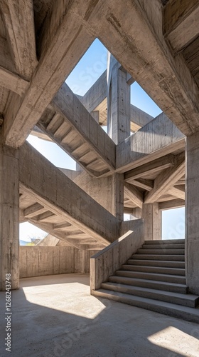 Obraz premium Concrete stairs, sunlight, modern architecture, open sky