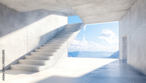© BISMILAH, Obraz premium Concrete Stairway with Mountain View