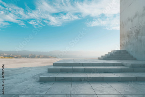 Fototapeta premium Concrete steps and buildings on the square,Empty architectural background.The...