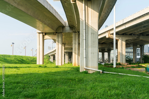 Obraz premium Concrete structure and asphalt road space under the overpass in the city