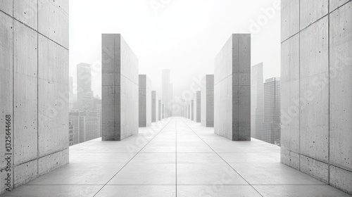 Fototapeta premium Concrete structures form an architectural path towards distant city buildings