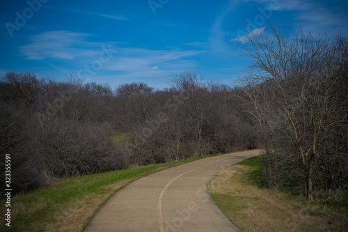 © photocinemapro, Fototapeta premium Concrete walkway in Texas city park on a sunny February day.