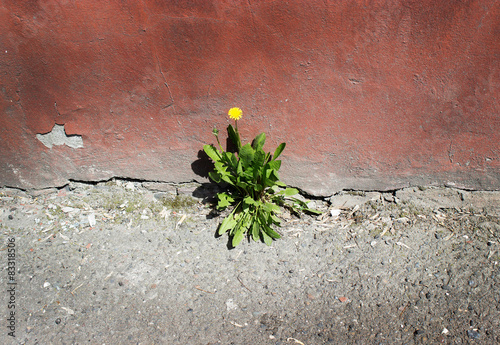© vpetukhova, Obraz premium concrete wall flower yellow dandelion resistant life