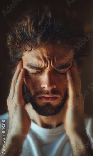© MMerellinn, Fototapeta premium Concussion focus: cerebral harm, cranial strike, neural disruption, brain disorder, skull blow, cognitive decline, memory problem, sensory change, motor weakness, mental strain, head condition trauma