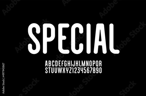 © marooshka, Obraz premium Condensed white font, rounded high alphabet, modern letters and numbers