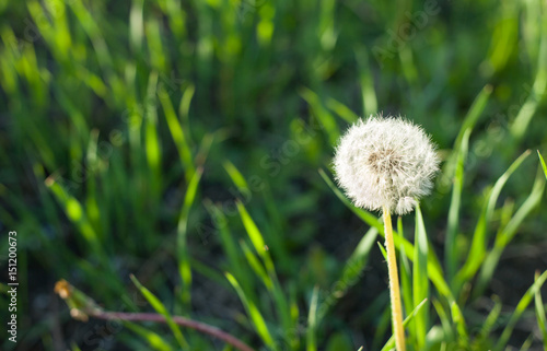 Fototapeta premium Condolence or sympathy design with dandelion flower and flying seed