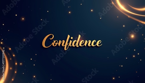 © Roman Stock studio, Fototapeta premium "Confidence" in gold with elegant glowing golden elements on dark background.