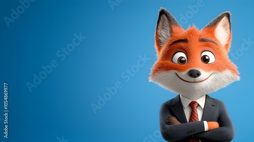 Obraz premium Confident and Composed Fox Character Dressed in a Formal Business Suit Standing at a Desk in a 3D Setting