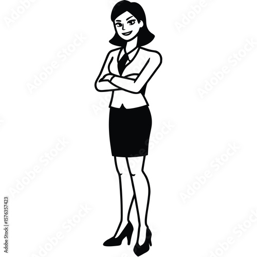 © GFX Corner, Fototapeta premium Confident business woman with arms crossed in a suit and skirt silhouette