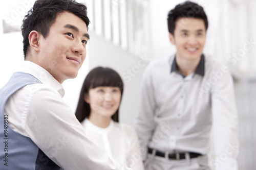 © Blue Jean Images, Fototapeta premium Confident businessman and his team in background