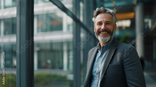 Naklejka premium Confident Businessman Smiling in Urban Environment