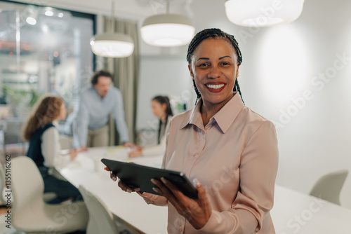 © Zamrznuti tonovi, Fototapeta premium Confident businesswoman leading a team meeting