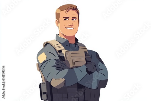 © AHNH3, Fototapeta premium Confident Cartoon Character in Tactical Gear with Smile Expression