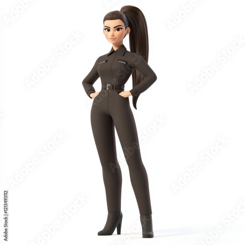 © arri, Fototapeta premium Confident Cartoon Woman in Dark Jumpsuit