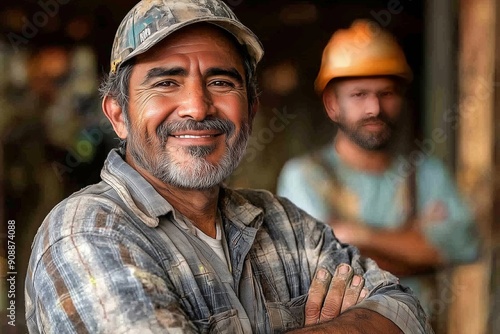 © mattegg, Fototapeta premium Confident Contractor and Worker Portrait at Construction Site Showcasing Teamwork and Professionalism